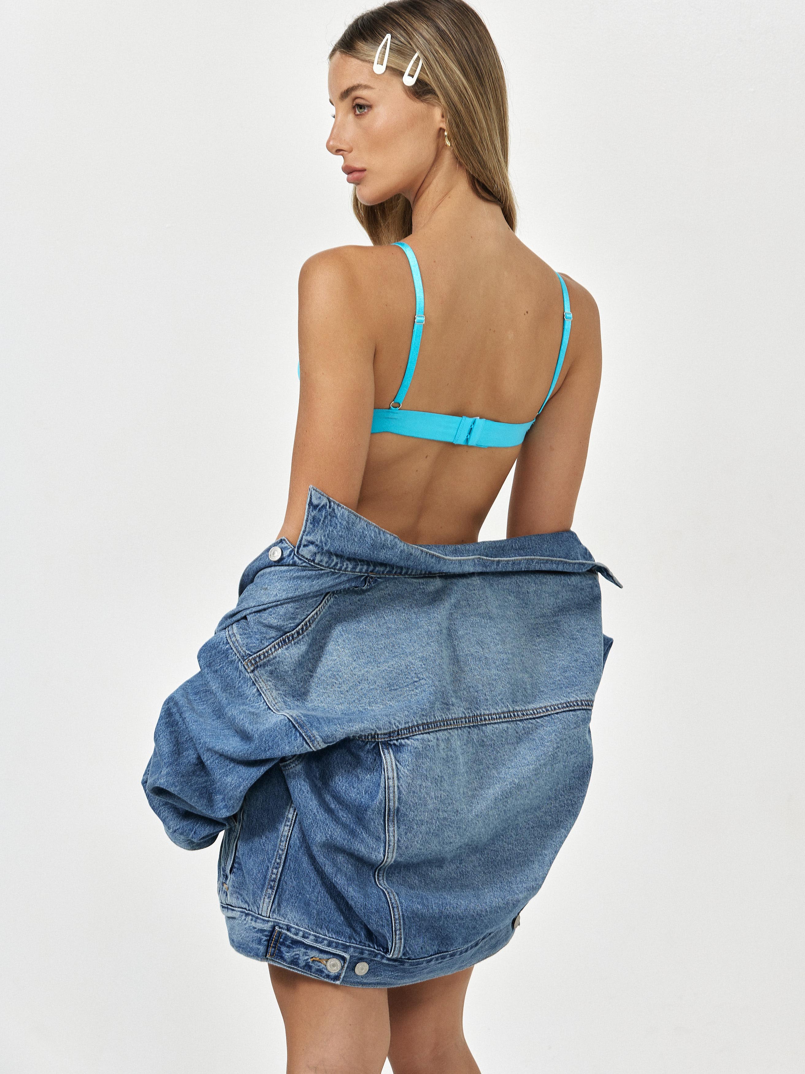 This teal Basic Ribbed Laced bralette set stands out with its unique design, featuring a beautiful laced seamless ribbed bralette lingerie for a distinctive look.